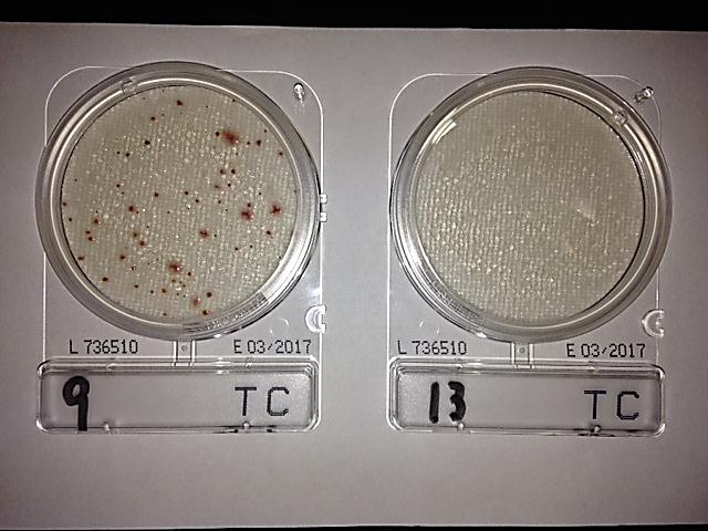 赤い塊を1個と数え、 1 mL中に何個一般細菌が含まれているか をご報告しています。一般細菌の数が1mLに100個を超えて検出されると、検査結果は「不適合」となり、飲用には適していない水となってしまいます。