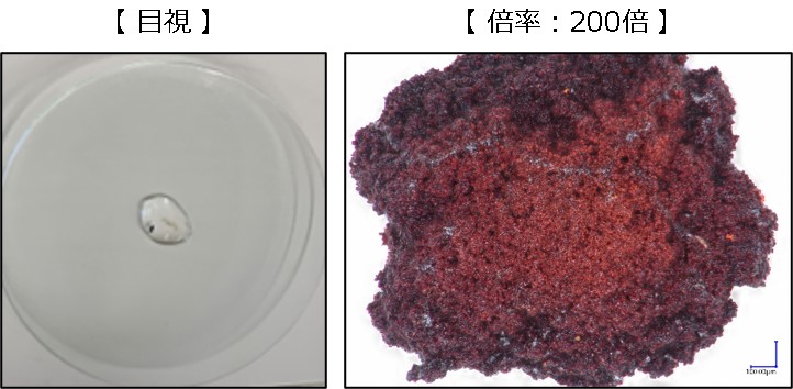 観察の結果、鉄サビの中でも「赤サビ」特有の色とサビが成長したことで生じる凹凸や小さな穴が確認できます。